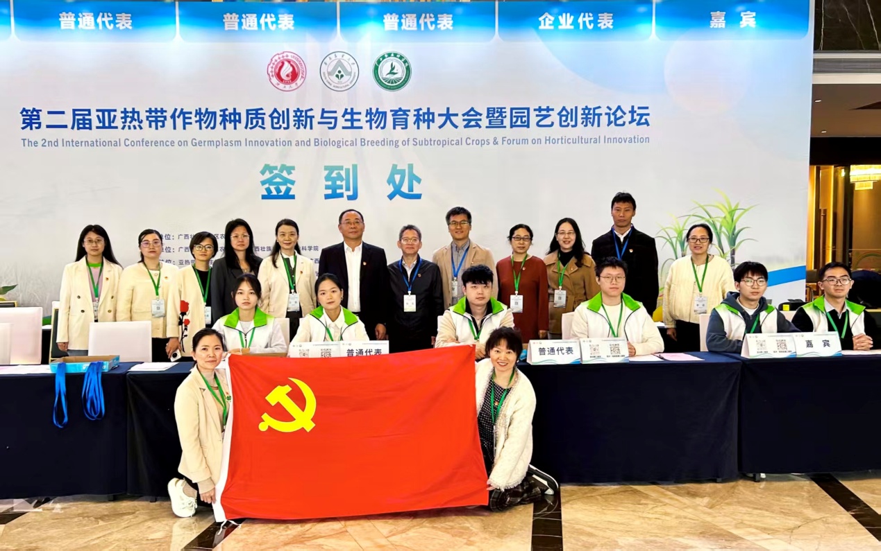 2025 年 11 月 21-23 日,第二届亚热带作物种质创新与生物育种大会暨园艺创新论坛在南宁隆重召开。我院党政办教工党支部联合亚热带农业生物资源保护与利用国家重点实验室直属党支部开展“党徽闪耀论坛间・服务种业促振兴”主题党日活动,以大会服务为载体,将活动主题转化为实实在在的行动。伟德国际victor1946党委常委、亚热带农业生物资源保护与利用国家重点实验室直属党支部书记于文进副校长,伟德国际victor1946党委书记袁涛同志共同引领、全程参与,两个支部党员以高度的责任担当投身大会服务,将党建力量融入学术盛会,为大会顺利举办注入红色动能。