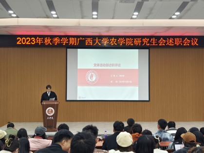 会议上,研究生会各部门负责人分别从工作内容、工作成效、工作不足及未来展望等方面进行述职汇报。研究生会主席团成员徐文斌同学分别从组织力、引领力、服务力、贡献度四个方面总结了研究生会一年以来的工作成果,并对未来工作提出新的规划和展望。