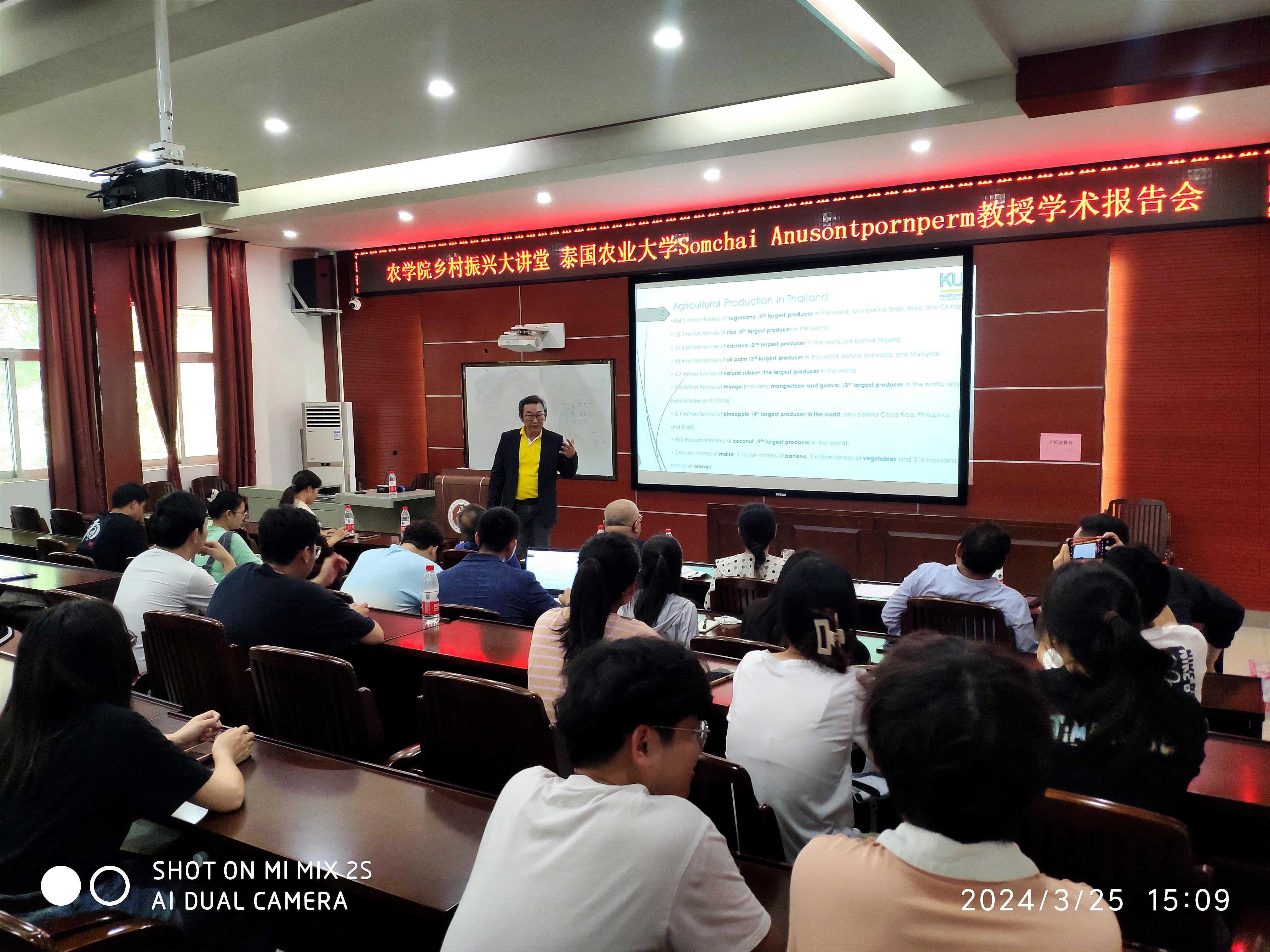 325日,应我院和广西农业环境与农产品安全重点实验室邀请,泰国农业大学(Kasetsart UniversitySomchai教授到我院开展学术交流,为我院师生举行了一场题为“Tropical Soil-Water Conservation and Management: A Case of Thailand(热带水土保持与管理——泰国为例)”的学术报告,报告会由李勇教授主持。