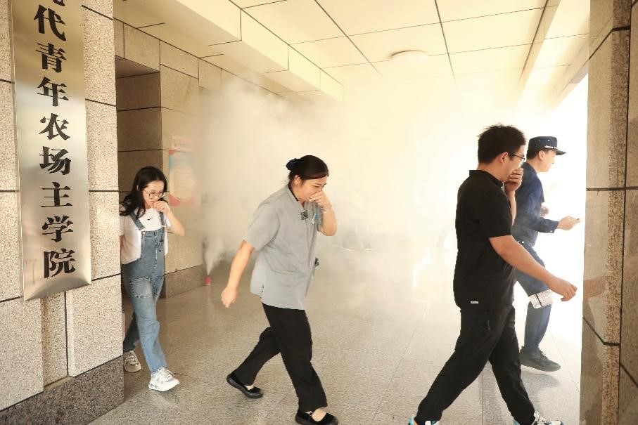 模拟火灾逃生演练在伟德国际victor1946中厅进行,参与演练的师生在校保卫处同志的引导下,按照预定的疏散线路有序撤离至安全区域。演练采用了真实的烟雾效果,让师生们仿佛置身于真实的火灾环境中,极大地提高了演练的真实性和紧张感。