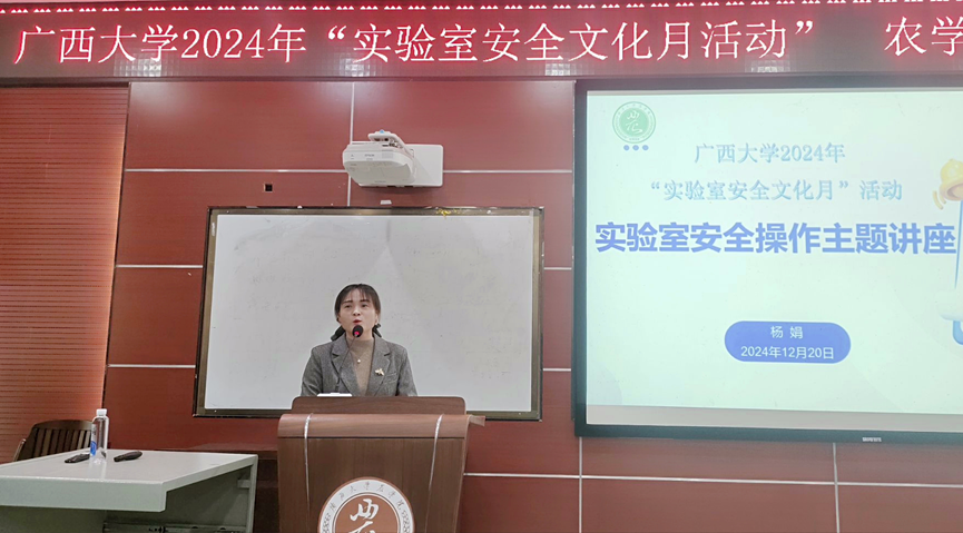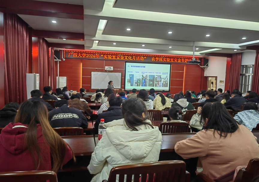实验室是教学科研的重要场所,安全是实验室运行的根本保障。为全面贯彻落实习近平总书记关于安全生产的重要论述和指示批示精神,进一步增强师生的实验室安全风险防范意识,弘扬实验室安全文化,提高应对突发事件的应急处置能力,根据学校“实验室安全文化宣传月”活动安排,我院于12月20日下午在306报告厅举办“实验室安全操作主题讲座”。本次讲座由学院副院长邹承武主持,杨娟正高级实验师担任主讲人,学院实验中心全体教师、实验课教师、各实验室负责老师同学及其它院系师生代表130人参加了活动