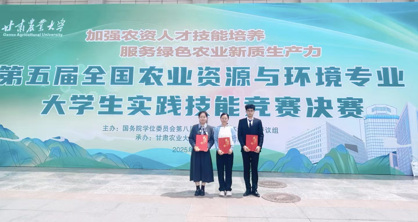 第五届全国农业资源与环境专业大学生实践技能竞赛决赛于2025年6月20-23日在甘肃农业大学隆重举行。我院参赛队伍经过精心准备,凭借扎实的专业功底、精湛的实践技能和出色的临场发挥,在本次大赛中荣获一等奖荣誉,充分展现了我院学子的专业素养和不懈追求。