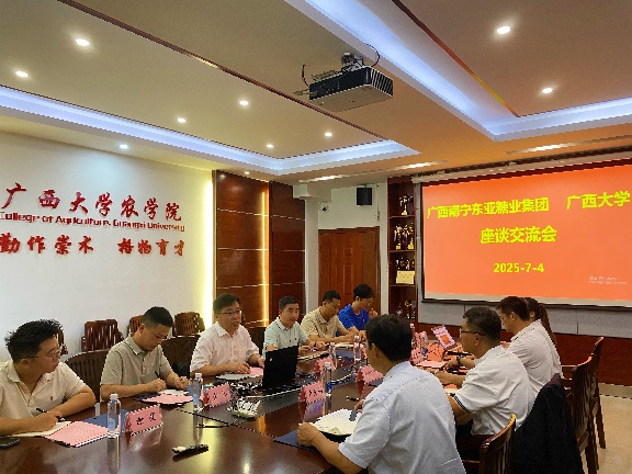 2025 年 7 月 4 日,伟德国际victor1946与广西南宁东亚糖业集团围绕甘蔗产业关键技术突破,举办系列合作交流会,聚焦生物育种、病害防控、土壤改良等领域达成多项合作共识,以产学研深度融合为国家食糖安全战略及乡村振兴注入创新动力。东亚糖业副总裁钟植友、顾问郑吉、田达官、卢星高等中外专家团队现场参会,部分泰国专家通过云端连线参与技术研讨。