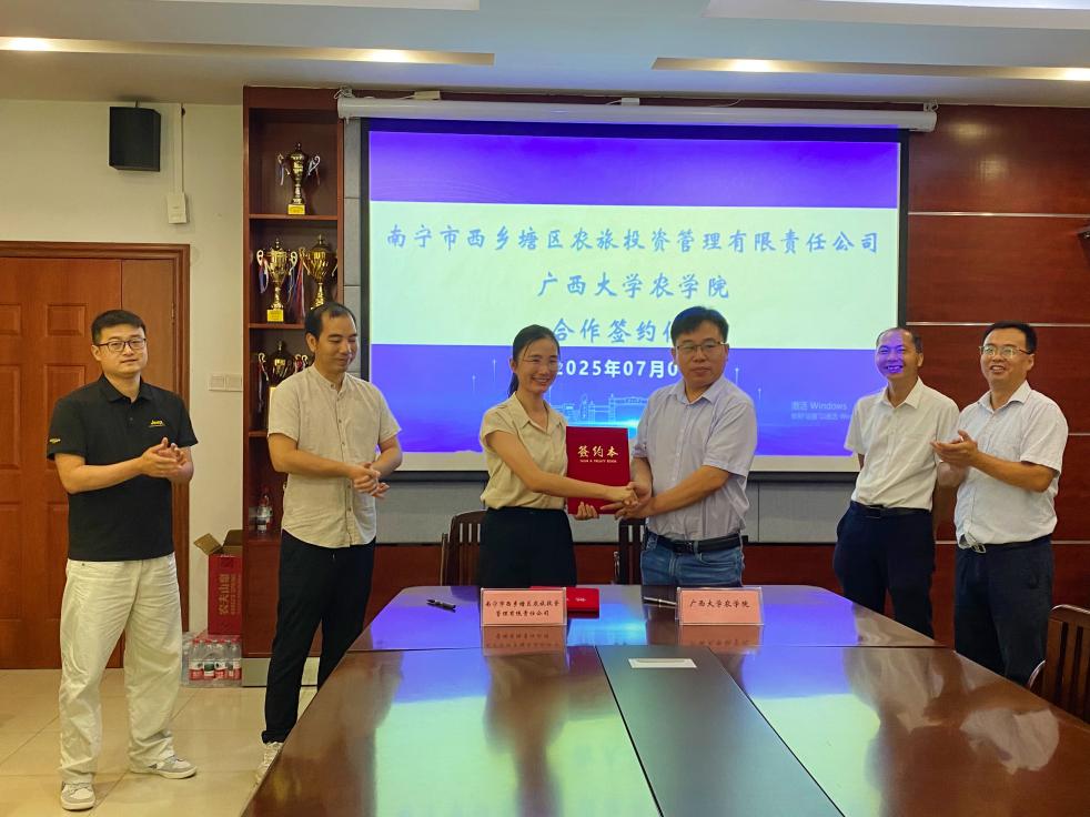 7月9日,学院与南宁市西乡塘区农旅投资管理有限责任公司正式签署框架合作协议,双方将在特色果蔬育种、技术推广、人才培养等领域展开深度合作,旨在以产学研融合为抓手,推动农业产业高质量发展,为乡村振兴注入新动能。
