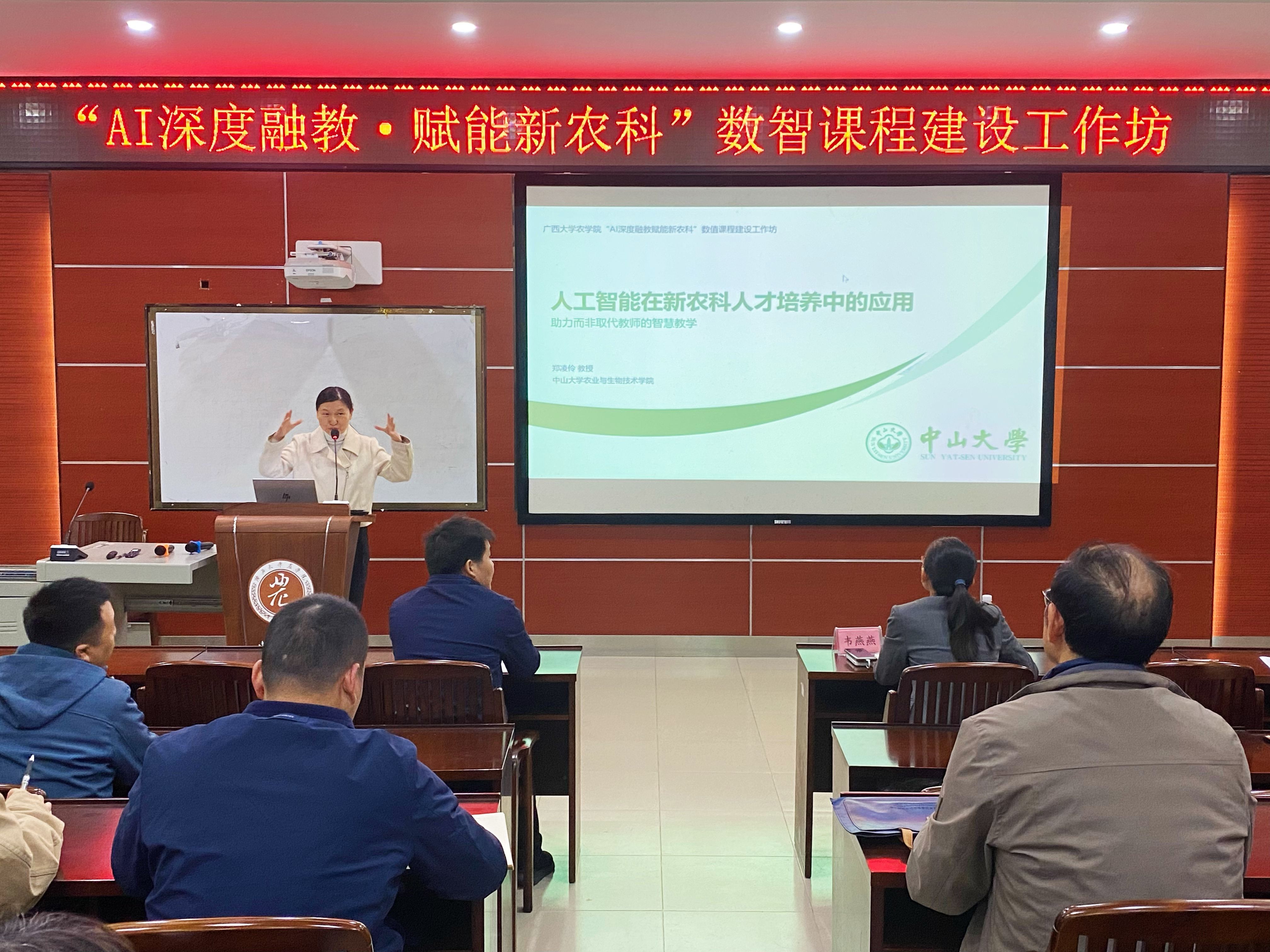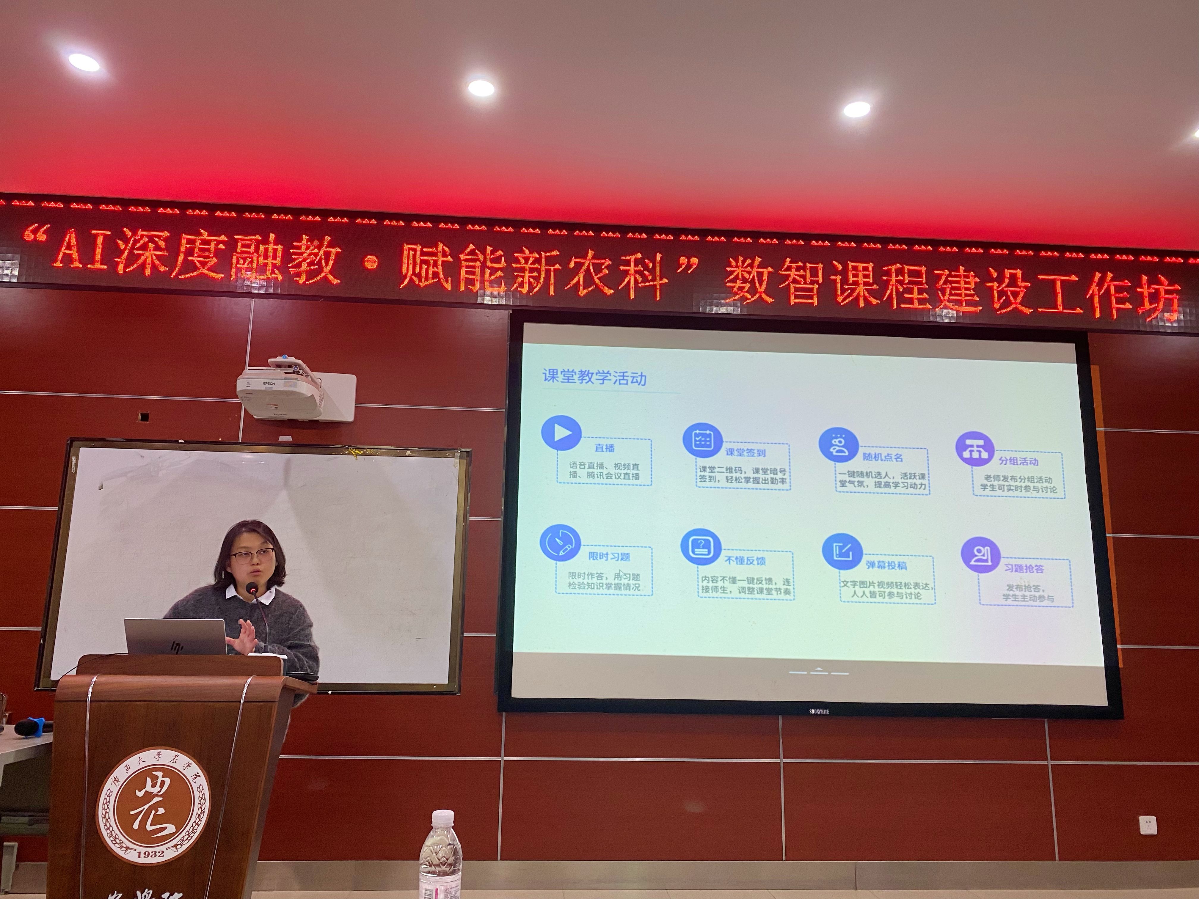为推进人工智能与高等教育深度融合,提升师生数字素养,助力新农科建设,11月19日下午,伟德国际victor1946与教务处(教师教学发展中心)联合举办 “AI 深度融教・赋能新农科” 数智课程建设工作坊。教师教学发展中心副主任胡立坤、伟德国际victor1946副院长韦燕燕,伟德国际victor1946相关教师参会。