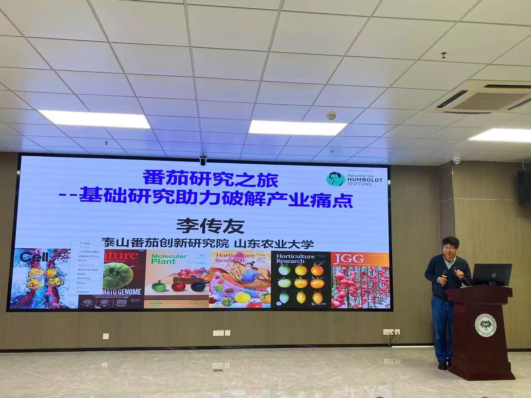 李教授团队聚焦番茄基因组精细解读,致力于 “健康美味型” 番茄品种的设计育种,成功培育出 “泰番” 系列高端番茄新品种,可有效替代同类进口品种。在Cell、Nature等国际顶级期刊发表论文 150 余篇,连续入选全球前 1% 高被引科学家及中国高被引学者榜单。科研成果先后荣获洪堡研究奖(Humboldt Research Award)、山东省自然科学一等奖(均为第一完成人)。申请 PCT 专利 1 项,获授权国家专利 20 余项、植物新品种权 2 项,育成的 7 个番茄品种通过农业农村部品种登记。