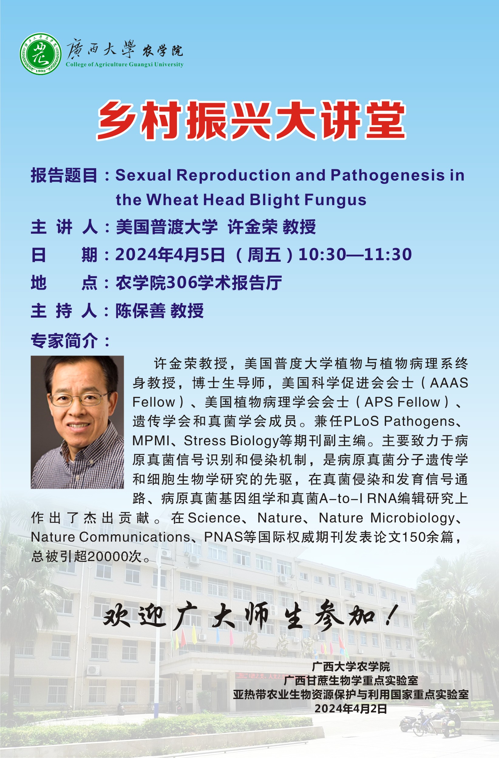 乡村振兴大讲堂-Sexual Reproduction and Pathogenesis in