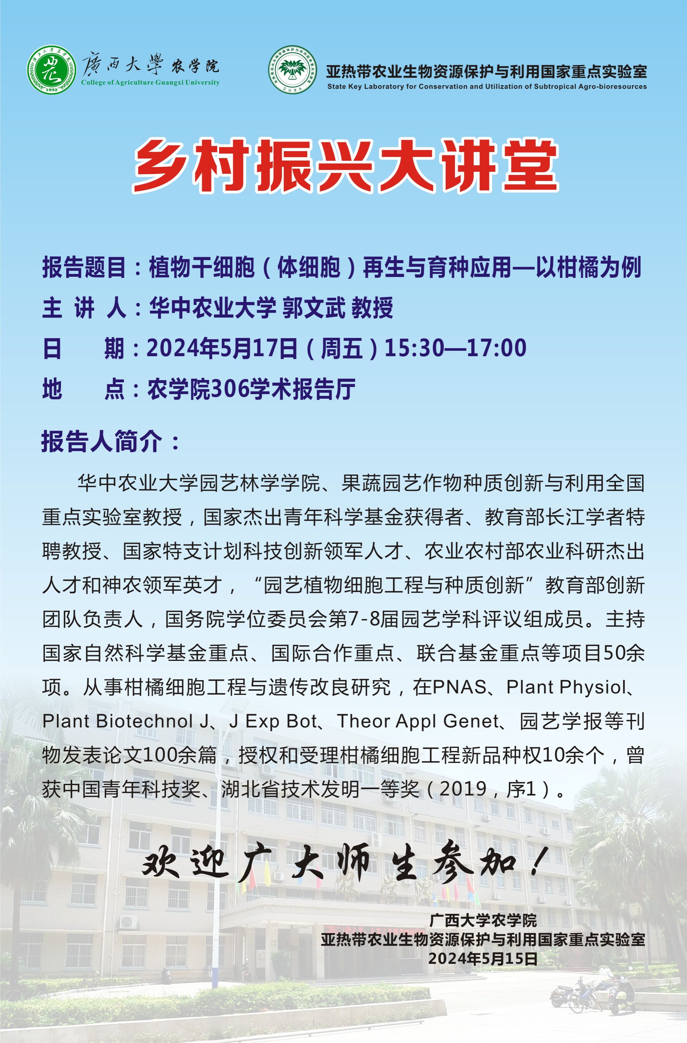 乡村振兴大讲堂-植物干细胞(体细胞)再生与育种应用一以柑橘为例