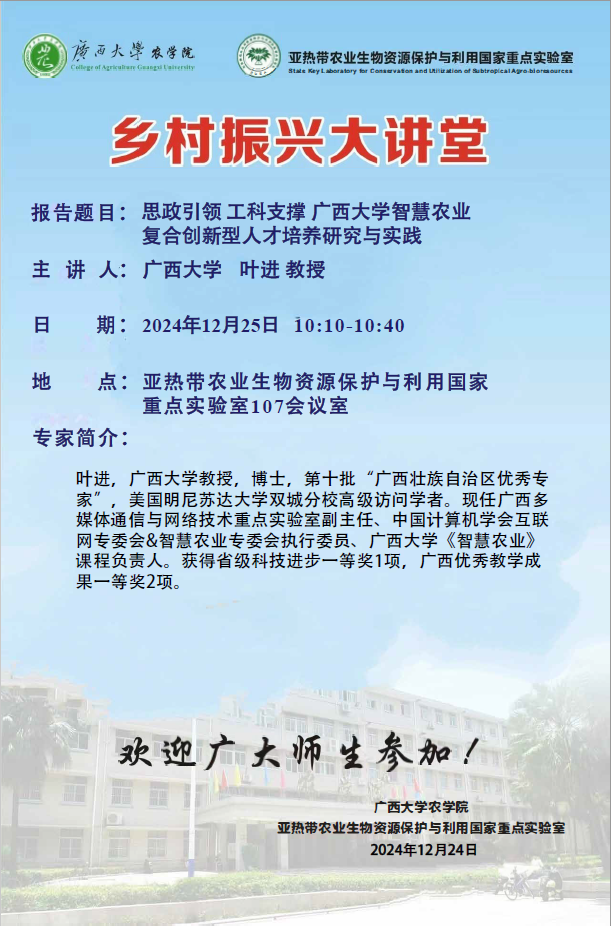 乡村振兴大讲堂-思政引领工科支撑伟德国际victor1946智慧农业复合创新型人才培养研究与实践-叶进