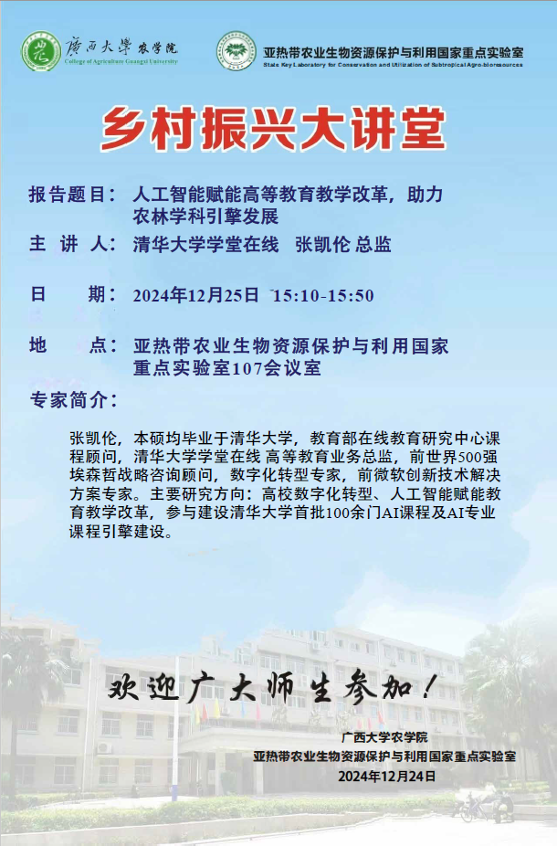 乡村振兴大讲堂-人工智能赋能高等教育教学改革,助力农林学科引擎发展-张凯伦