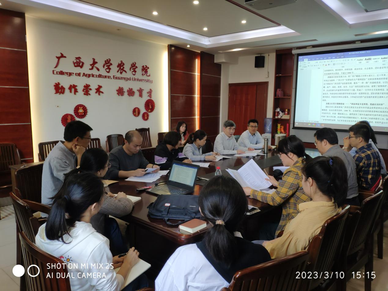 2023年3月10日,学院在149会议室召开“黄大年式甘蔗绿色生产教师团队”建设研讨会。院长李建雄教授、植物保护学科带头人陈保善教授、植物保护系主任谭辉华教授、副主任郑德洪副教授、以及甘蔗绿色生产团队教师参加会议。会议由副院长韦燕燕副教授主持。
